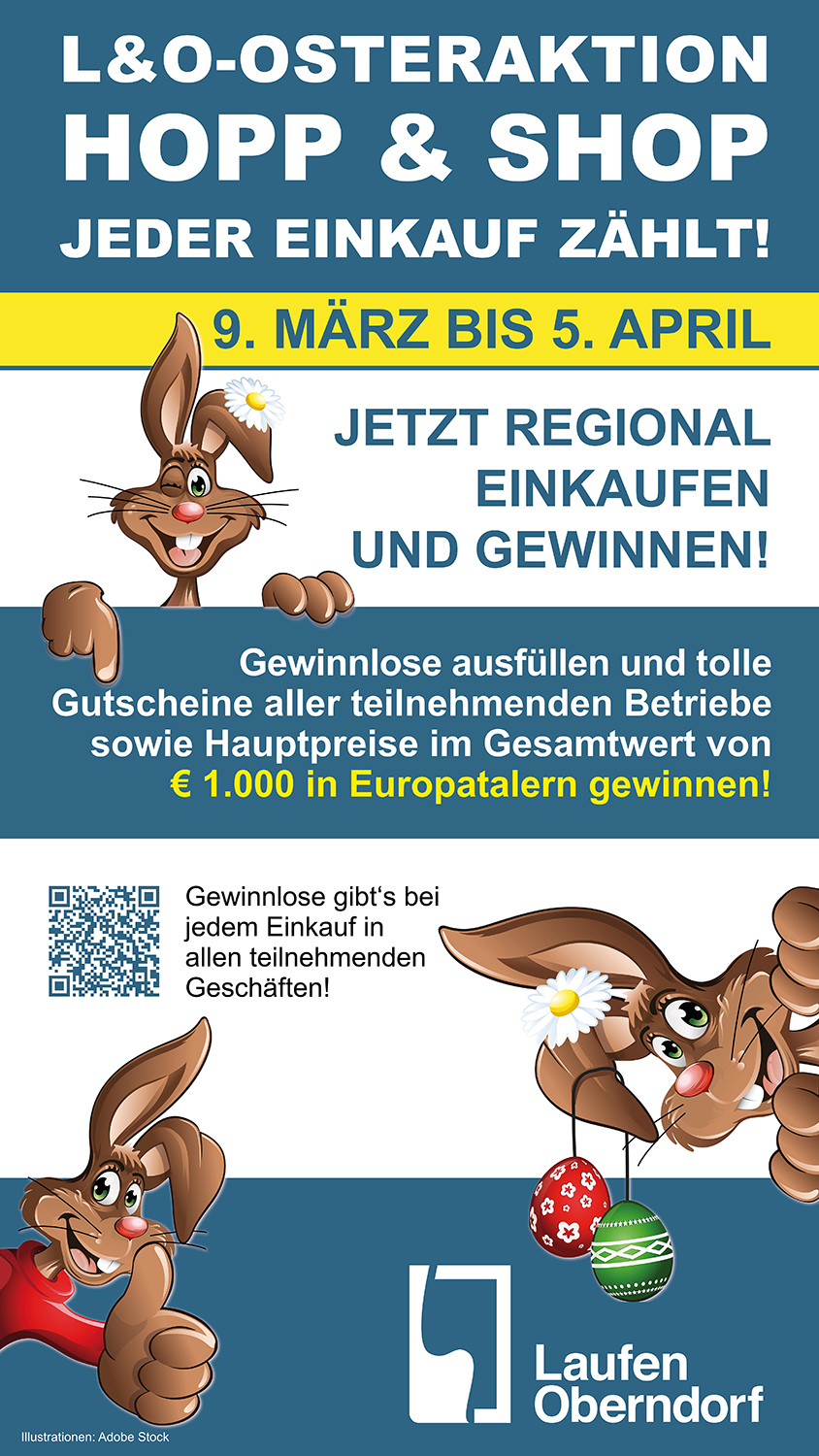 Außerdem verstecken wir in der Karwoche wieder täglich kleine Osternester in den Stadtparks von Laufen und Oberndorf!